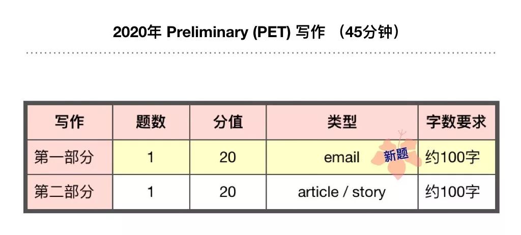 這次考試改革的重要方向是為了幫助學(xué)員在劍橋英語(yǔ)的不同難度級(jí)別間平穩(wěn)過渡,順暢對(duì)接,所以2020年1月開始KET和PET兩個(gè)級(jí)別的題型均做了調(diào)整。