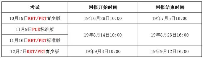 2019下半年KET/PET/FCE網(wǎng)報攻略